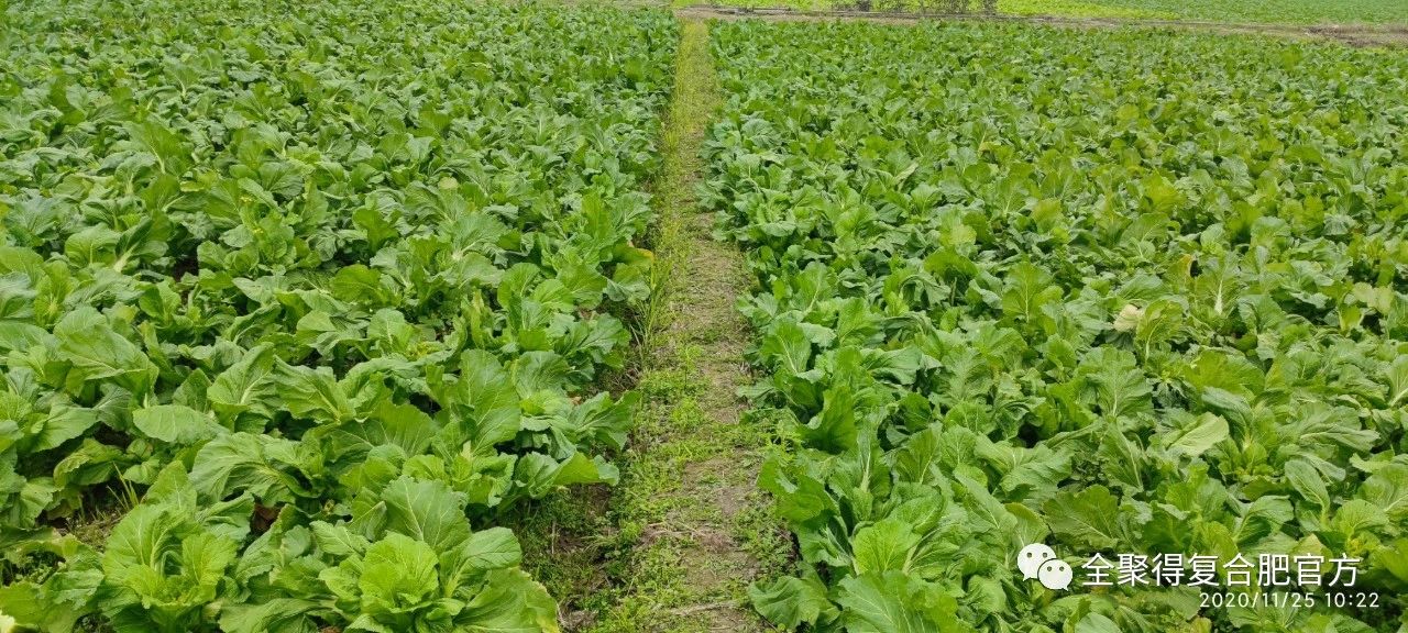 用“全聚得”肥料,前期来得快,后期肥效期又很长,熬劲足,种出的菜不但产量高,而且品质好,菜叶厚实、坚挺有力,并且耐储存。流通商反映,运到外省和出口,烂的菜少得多,因此,流通商往往愿意以更高的价格来收购。